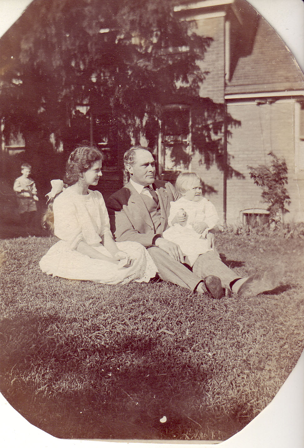 This is a photo of Jean Paton, age 2½ or 3, with her second adoptive father, Dr. Thomas Paton and her seven-year-old foster sister, Virginia. Jean was adopted twice. The first time, she was adopted on May 10, 1909, by Harry and Millie Dean, a lower-middle class couple who also lived in Detroit. The Deans renamed the baby Madeline Viola Dean. Baby Madeline lived with the Deans for only two years. At age 44, Harry Dean, a house painter, contracted cancer of the liver and died on May 6, 1911. (I have not been able to locate any photos of the Deans). The last six months that Madeline lived under the Deans’ roof were filled with illness and the smell of death. Some seventy years later, Paton believed that her first adoptive father’s death had left her with “an undying and fierce hatred of the spectacle of human suffering.” Impoverished by her husband’s death, Millie Dean was unable to support Madeline. She returned the child to the Children’s Home Society of Michigan, which again placed Madeline in a foster home. Madeline stayed in that foster home for 7½ months. Then on December 11, 1911, Dr. Thomas and Mary M. Paton of Ypsilanti, Michigan, adopted Madeline and renamed her Jean Madeline Paton.